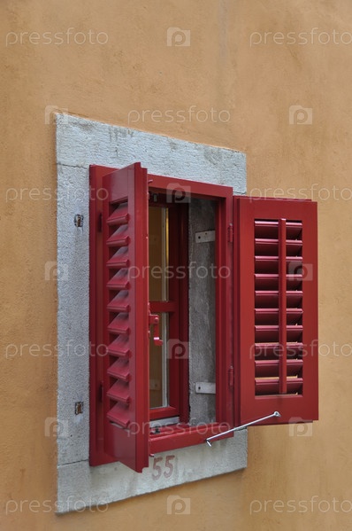 Красные ставни на оконе