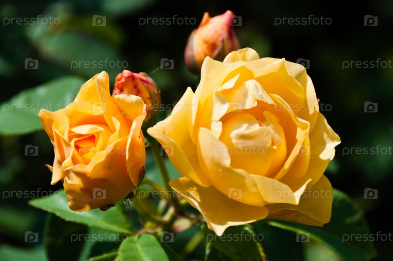 Яркие оранжевые розы в саду
