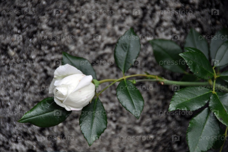 Белая роза на фоне серой каменной стены