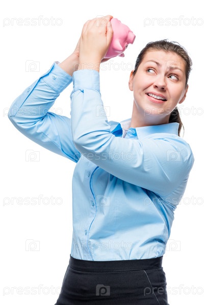 Портрет девушки с розовой копилкой
