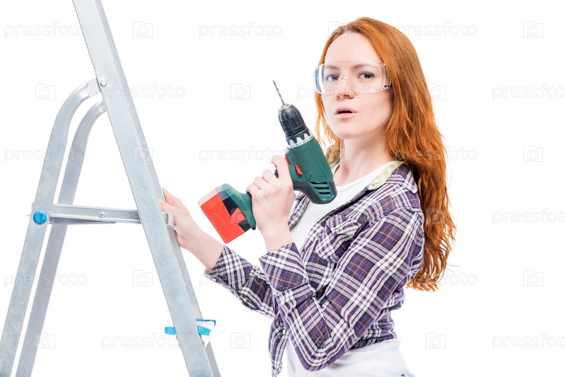 Девочка с дрелью на стремянке