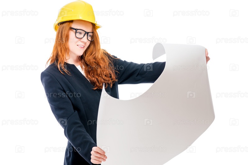 Молодая успешная женщина с чертежами