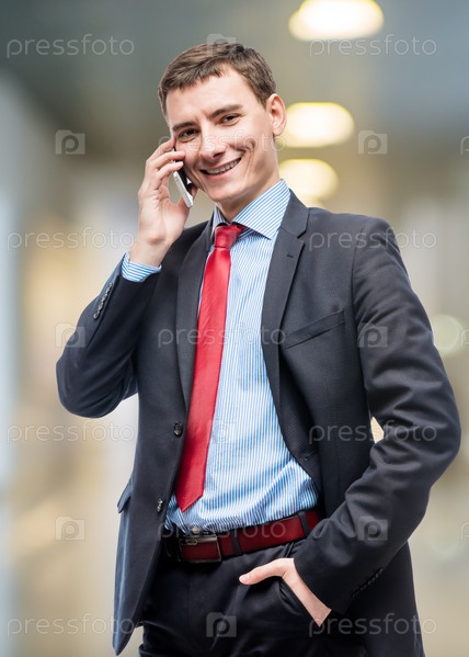 Счастливый бизнесмен с телефоном