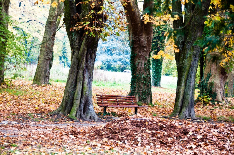 Скамейка в осеннем парке