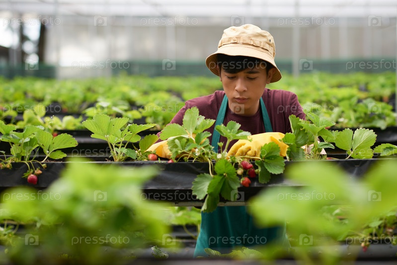 Сбор спелой земляники