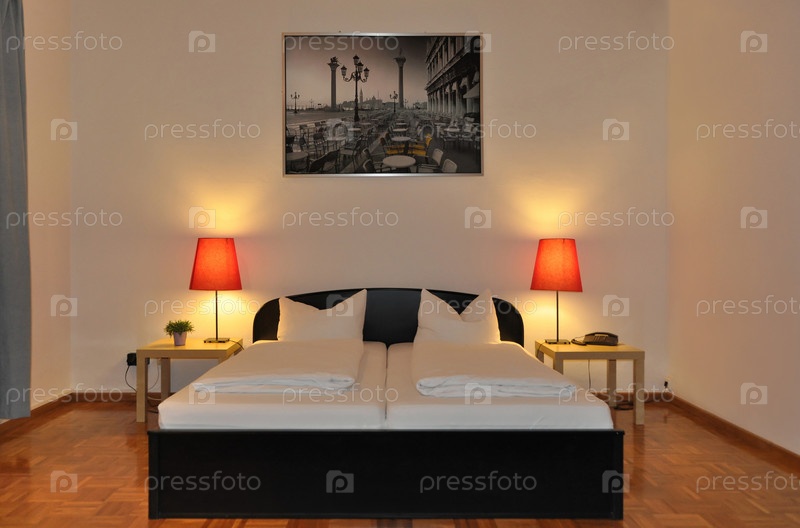 Двуспальная кровать в номере отеля