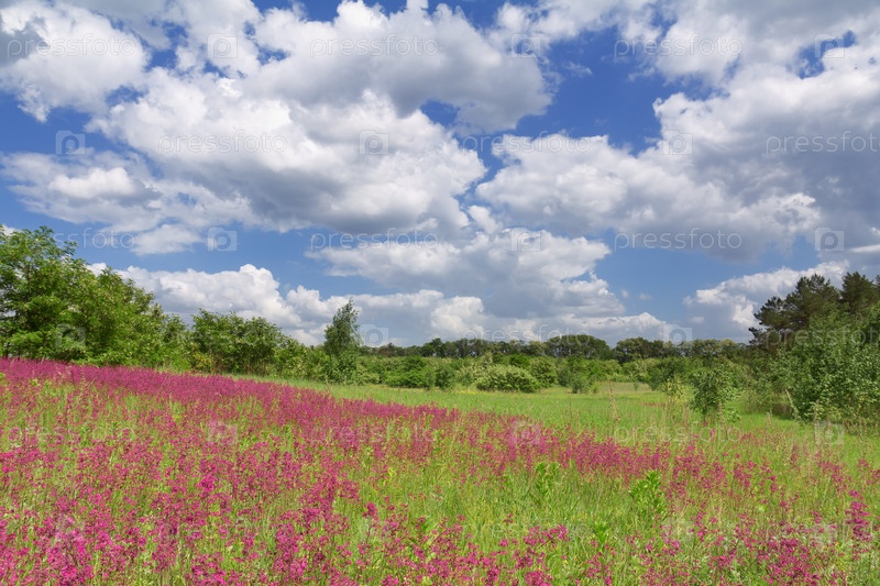 Весенние полевые цветы на холме