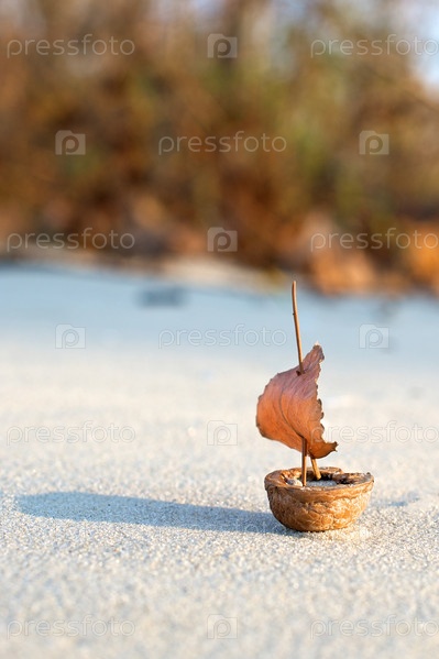 Корабль из скорлупы на песке