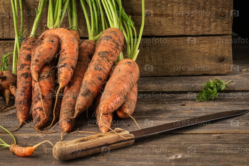 Свежая морковь на деревянном фоне