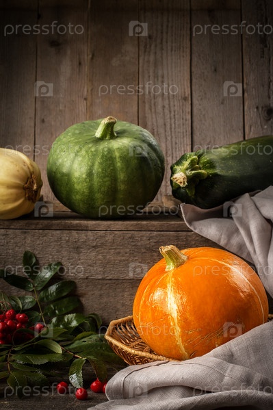 Желтая тыква на деревенском деревянном столе