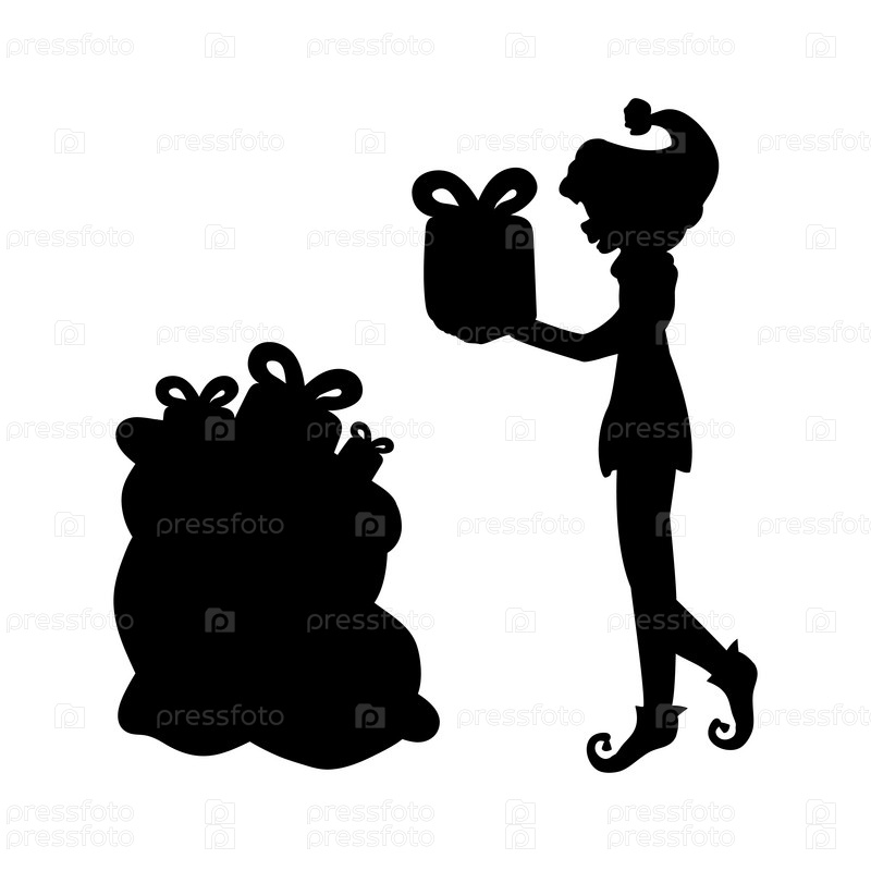 Эльф и рождественские подарки силуэт