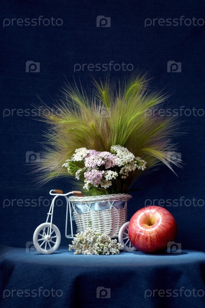 Натюрморт с букетом, яблоком