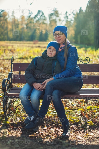 Мать и сын в осеннем парке