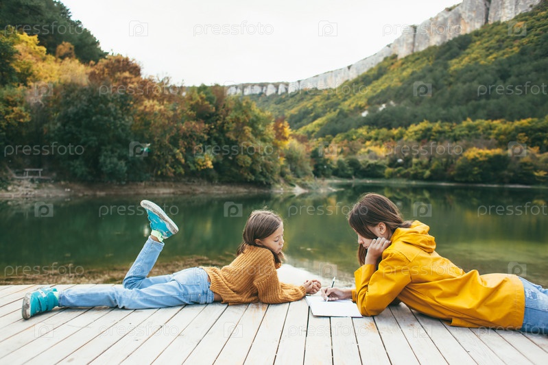 Дети на берегу озера