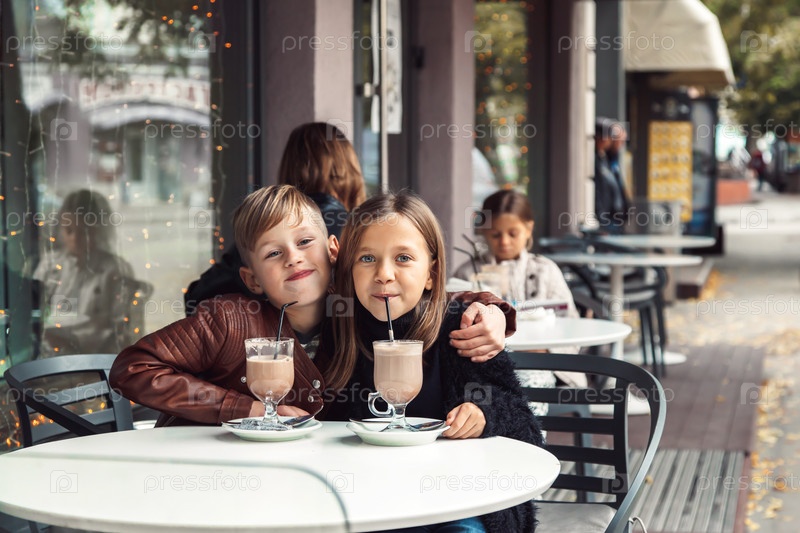 Дети в кафе на открытом воздухе