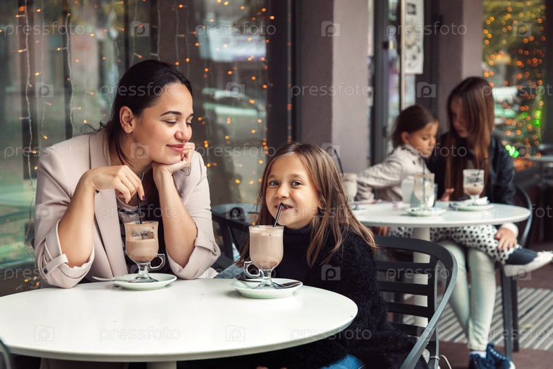 Семья в кафе на открытом воздухе