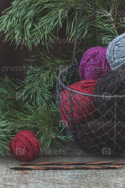 Пряжа в старой проволочной корзине