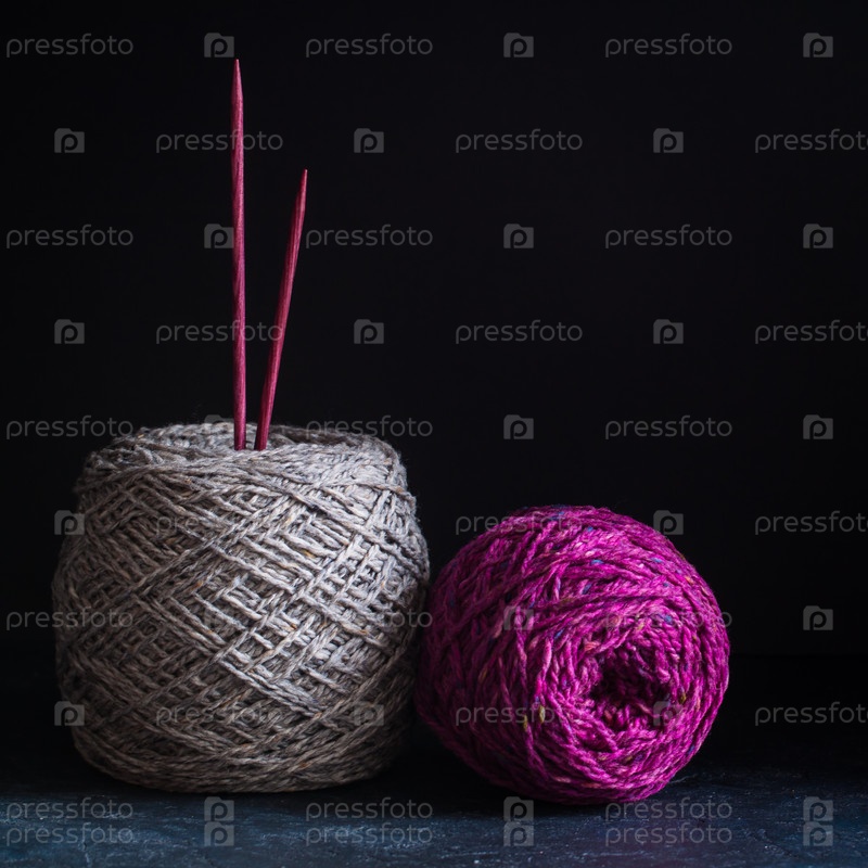 Пряжа на темном деревянном фоне