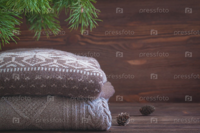 Стопка вязаной зимней одежды