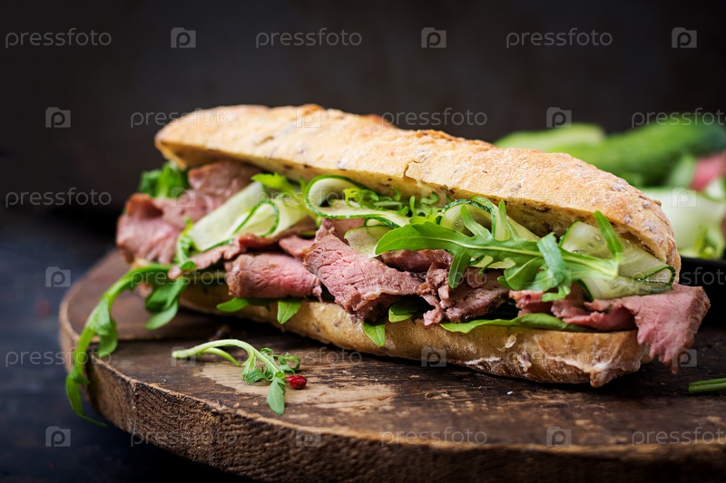 Сэндвич с жареной говядиной, огурцами и рукколой