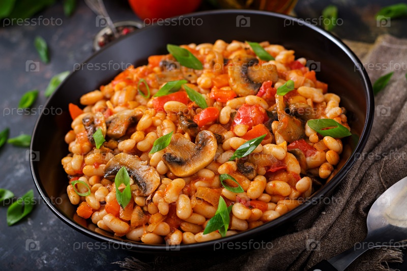 Тушеная белая фасоль с грибами и помидорами