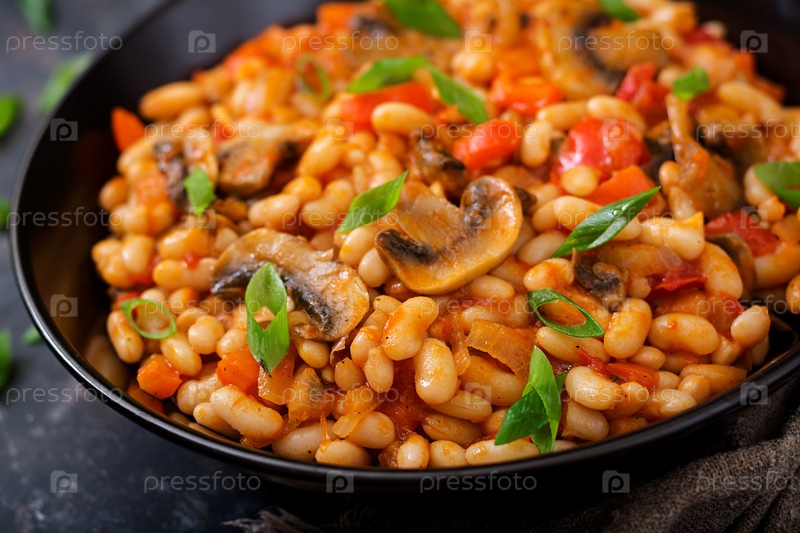 Тушеная белая фасоль с грибами и помидорами