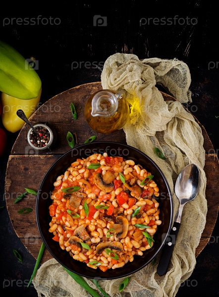 Тушеная белая фасоль с грибами и помидорами