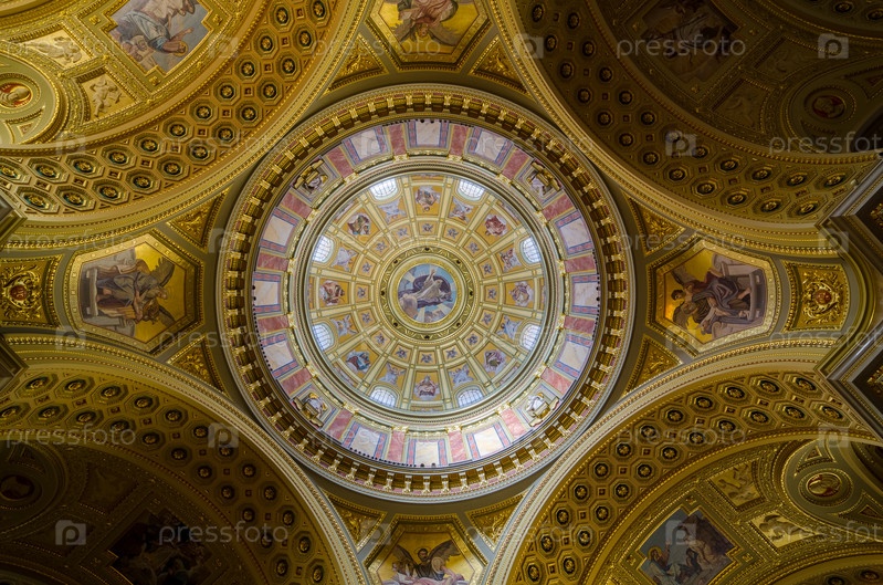 Интерьер купола. Украшенный потолок с фреской и золотом