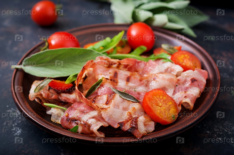 Жареный бекон и помидоры