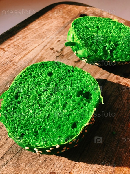 Зеленая булочка с кунжутом