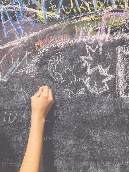 Ребенок рисует мелом на школьной доске