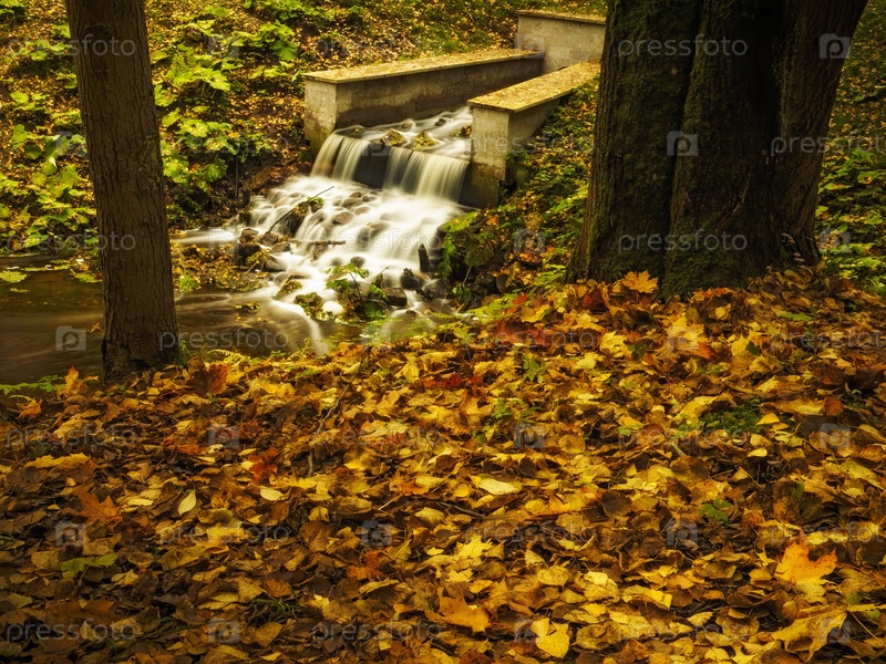Искусственный водопад в осеннем парке