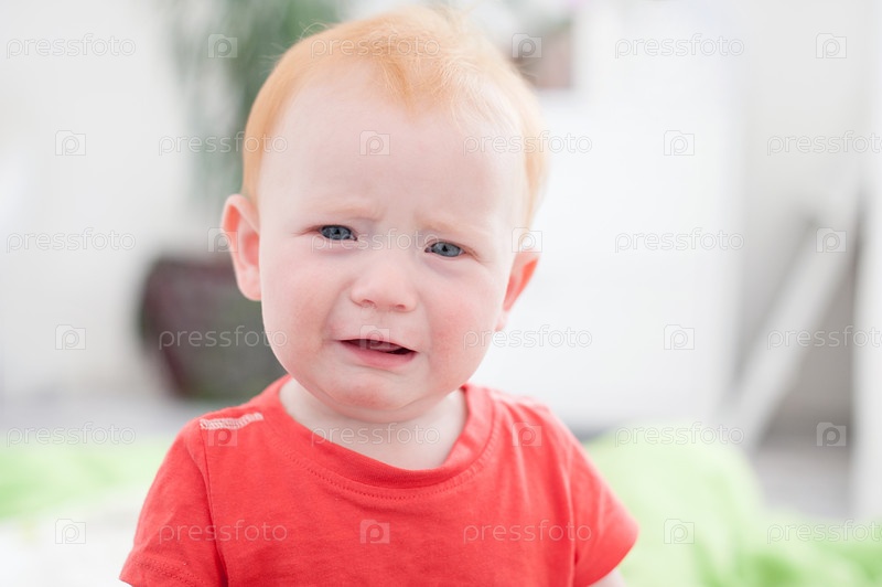 Грустно рыжий мальчик плачет