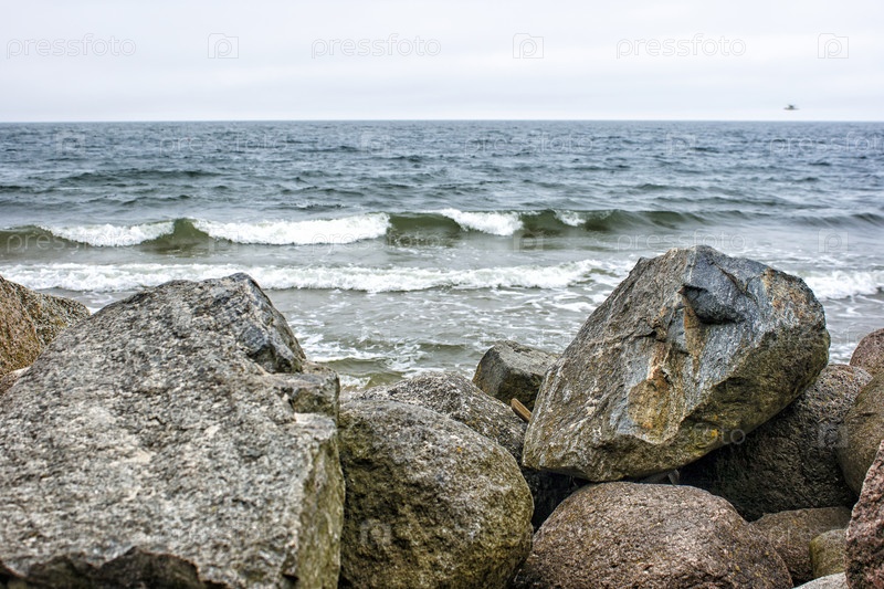 Морские волны на большом камне