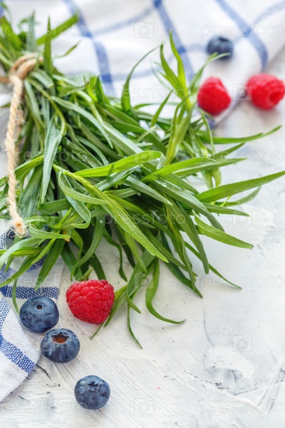Пучок свежего эстрагона и ягод