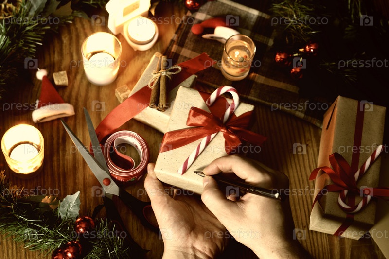 Упаковка подарка на Рождество