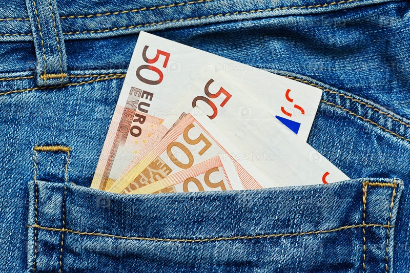 Банкноты евро в заднем кармане брюк