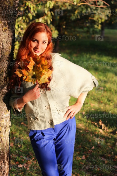 Рыжеволосая девушка осеннью