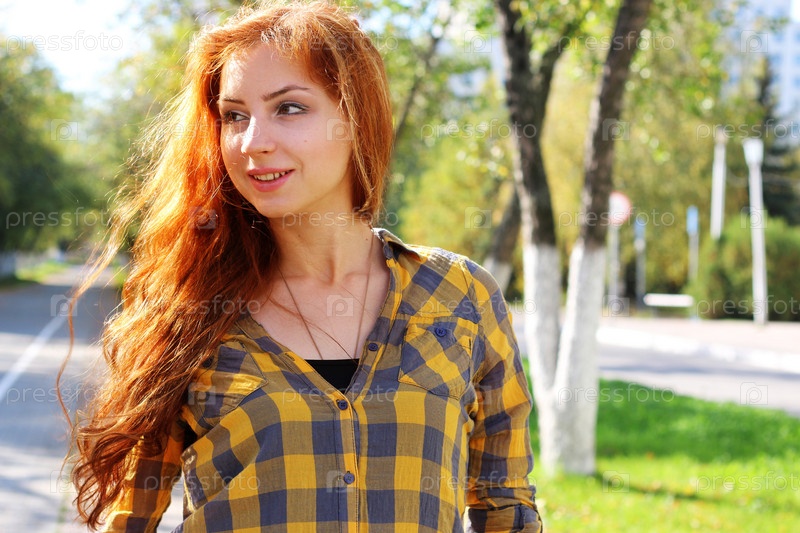 Рыжеволосая девушка осенью