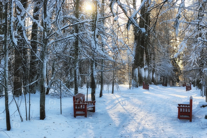 Деревянные скамейки в зимний период