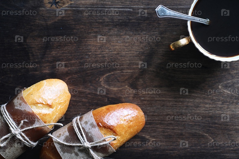 Свежеиспеченный французский багет и кофе