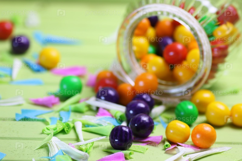 Цветные конфеты в стеклянной банке