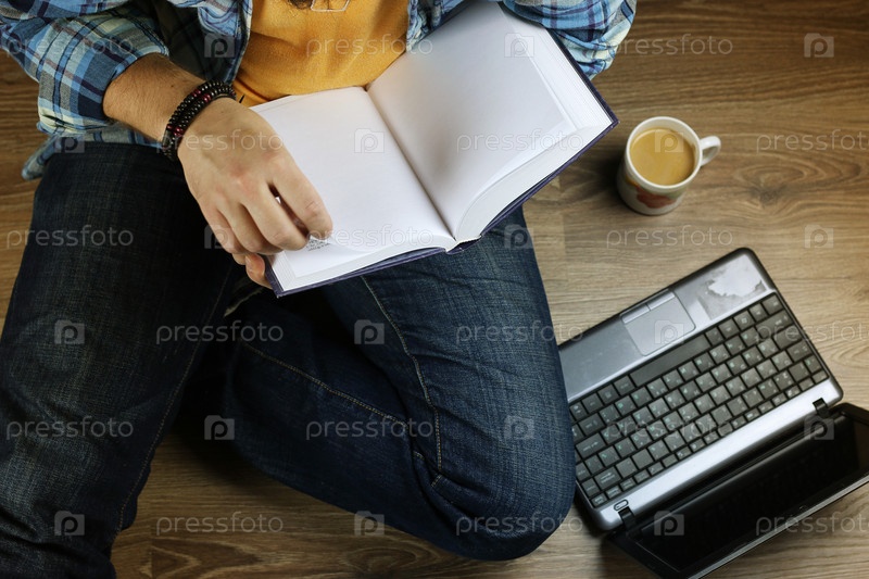 Человек на полу с ноутбуком