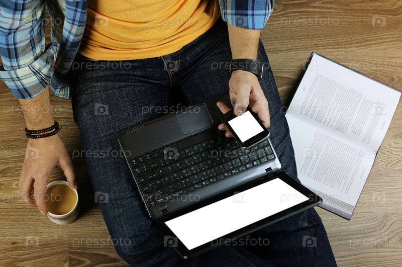 Человек на полу с ноутбуком
