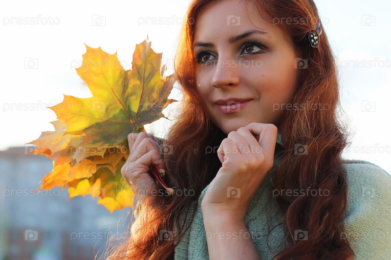 Рыжеволосая девушка осенью