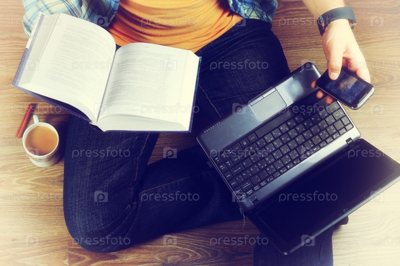 Человек на полу с ноутбуком