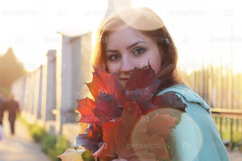 Рыжеволосая девушка осенью
