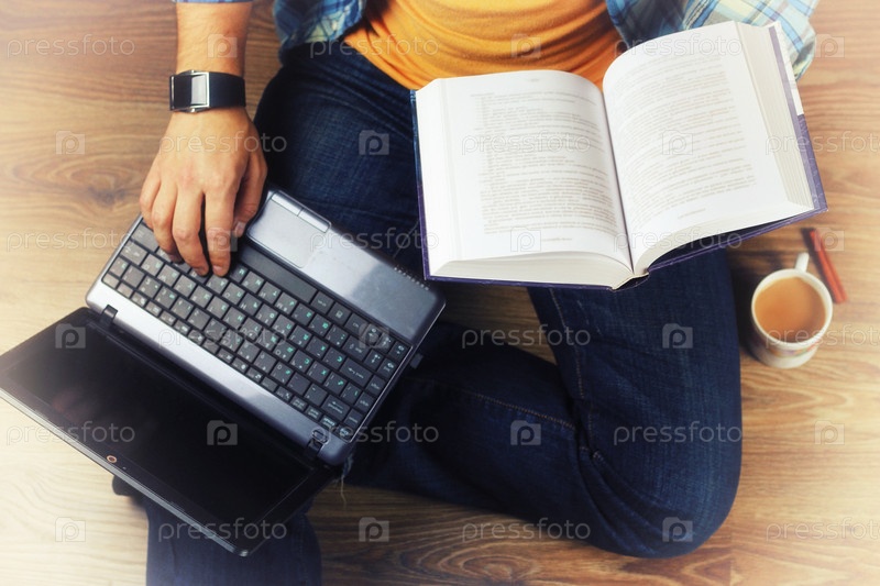 Человек на полу с ноутбуком