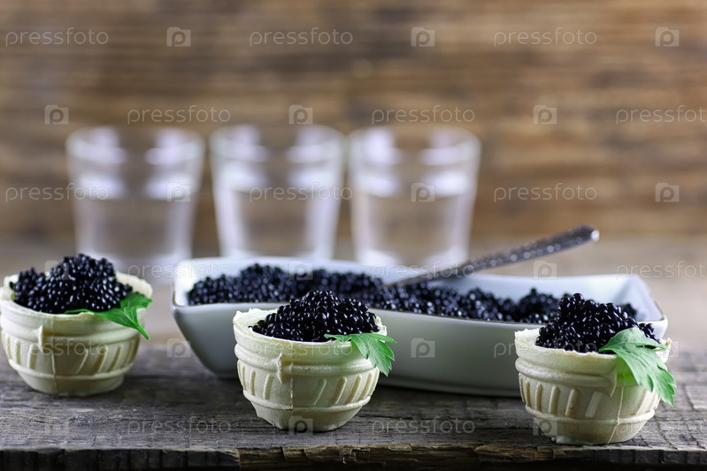 Черная икра на деревянном фоне