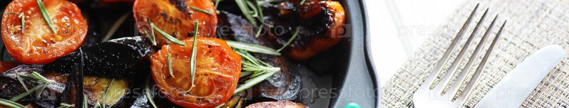 Длинный горизонтальный фон из овощей на гриле